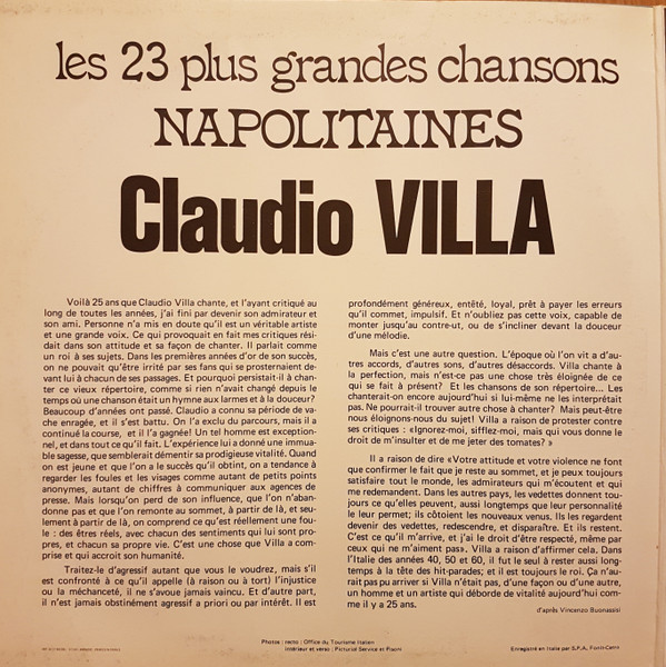 Claudio Villa – Les 23 Plus Grandes Chansons Napolitaines (2xLP, Comp, RE)