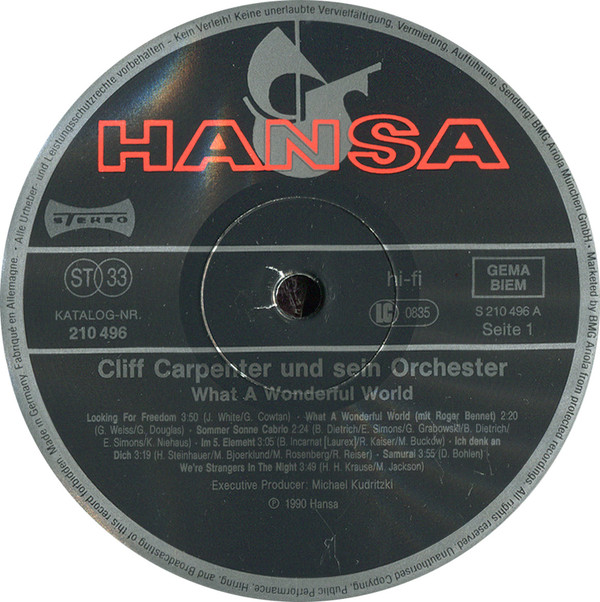 Cliff Carpenter Und Sein Orchester – What A Wonderful World (LP, Album)