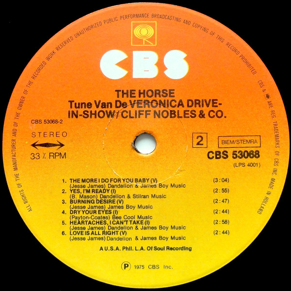 Cliff Nobles & Co – The Horse (LP, Album, RE)