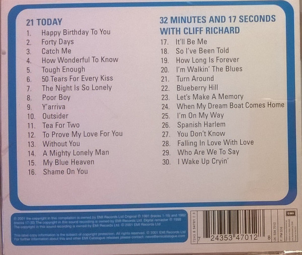 Cliff Richard – 21 Today & 32 Minutes & 17 Seconds (CD, Comp, RM)
