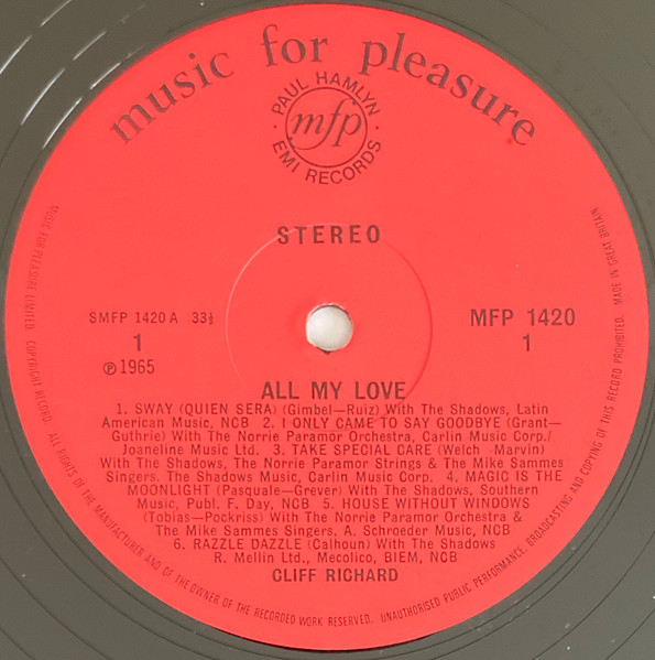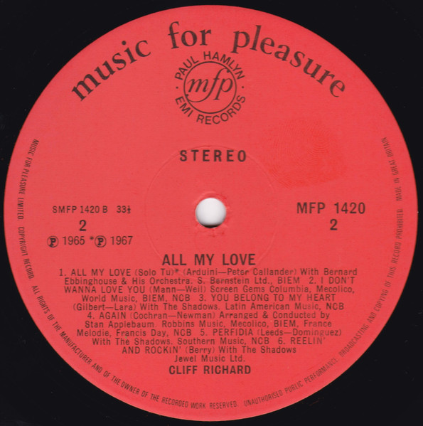 B1. Cliff Richard, The Bernard Ebbinghouse Orchestra – All My Love (Solo Tu)
