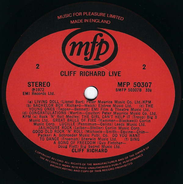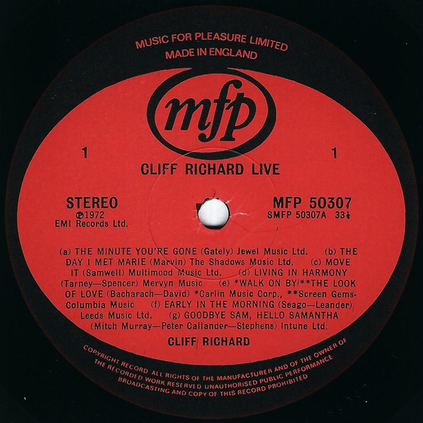 Cliff Richard – Cliff Richard Live! (LP, Album, RE)
