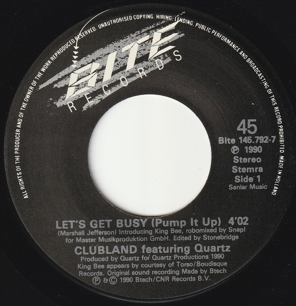 Clubland Featuring Quartz (2) – Let’s Get Busy (Pump It Up) (7″, Single)