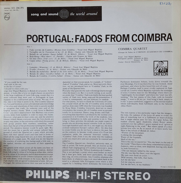 Coimbra Quartet – Portugal: Fados From Coimbra (LP, Album)