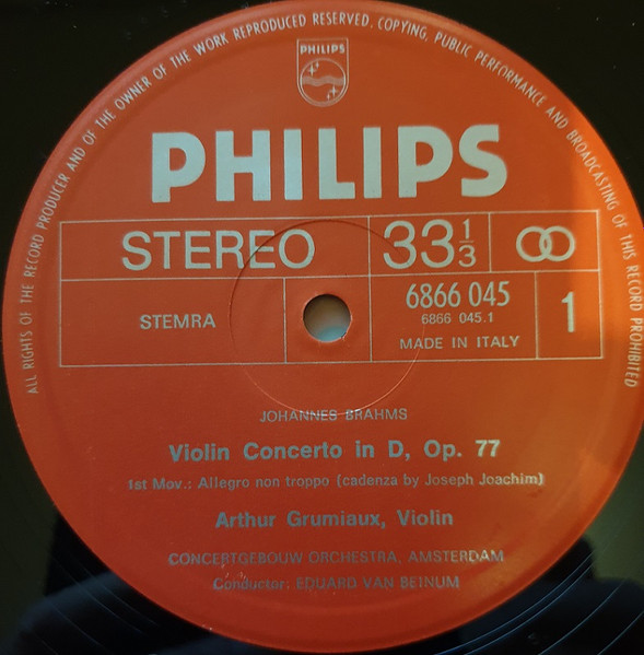 . Eduard van Beinum, Arthur Grumiaux – Brahms: Violin Concerto In D, Op. 77
