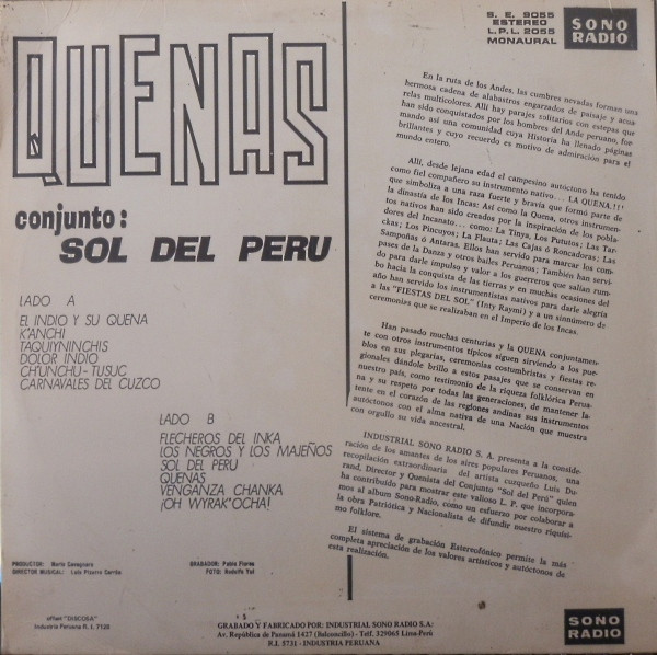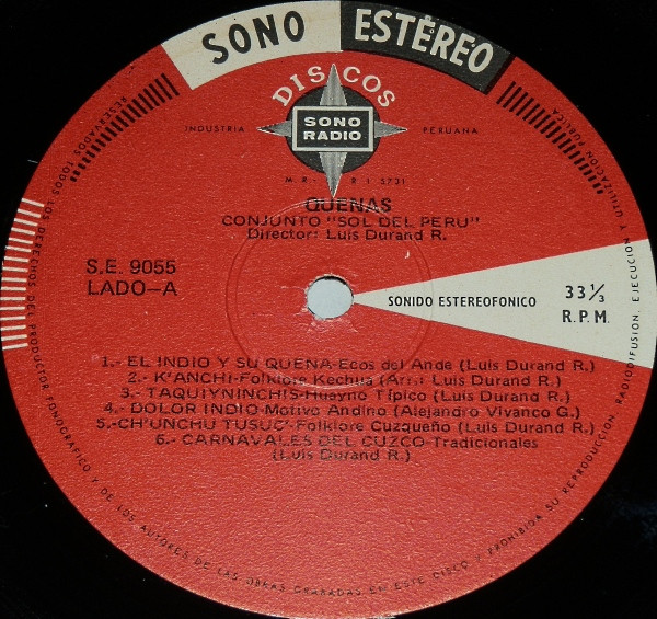 Conjunto Sol Del Perú – Quenas (LP, Album)