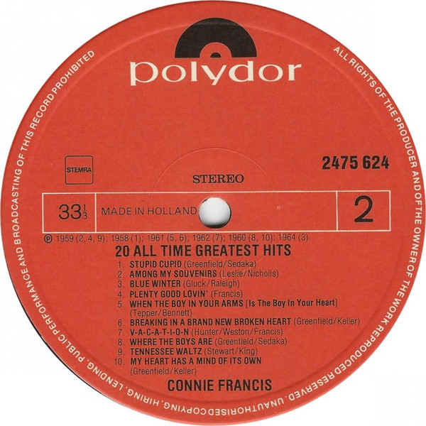 Connie Francis – 20 All Time Greatest Hits (LP, Comp)