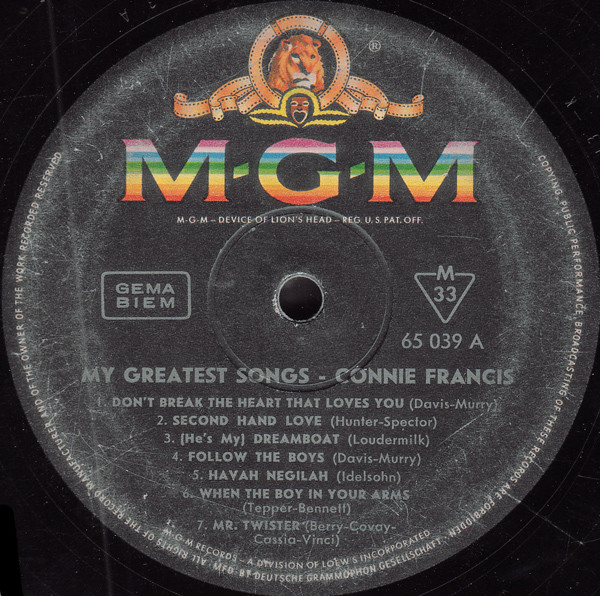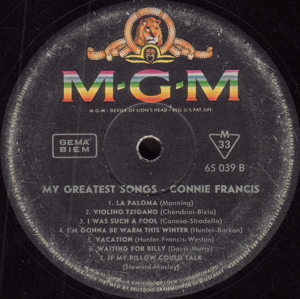 Connie Francis – My Greatest Songs (LP, Comp, Mono)