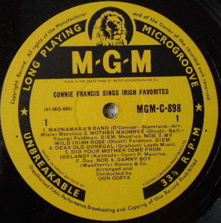 Connie Francis – Sings Irish Favorites (LP, Album, Mono)