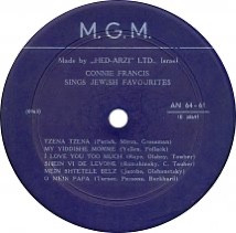 Connie Francis – Sings Jewish Favorites (LP, Album, Mono)