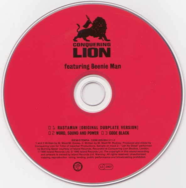 Conquering Lion Featuring Beenie Man – Rastaman (CD, Single)