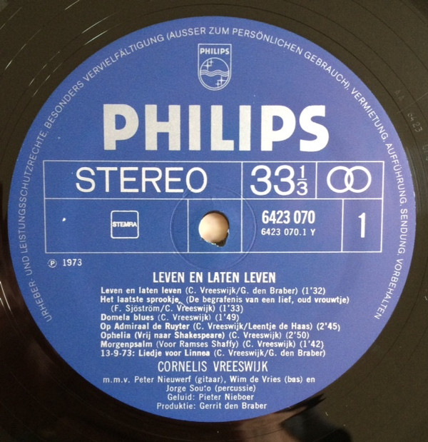 Cornelis Vreeswijk – Leven En Laten Leven (LP, Album, Gat)