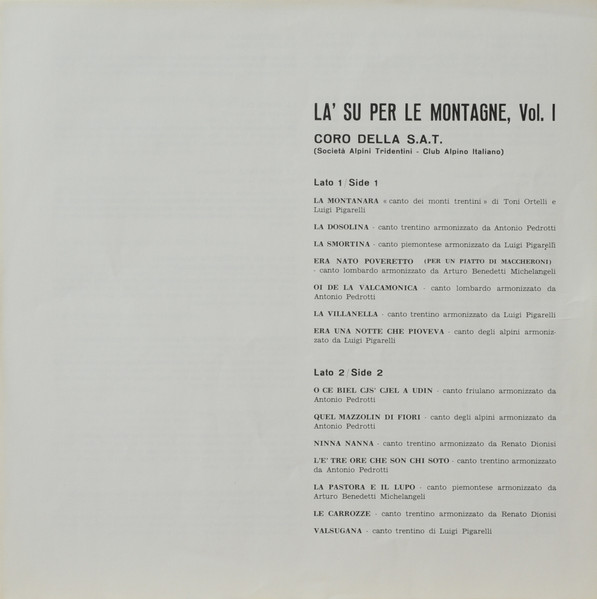 Coro Della S.A.T. – Là Su Per Le Montagne (LP)