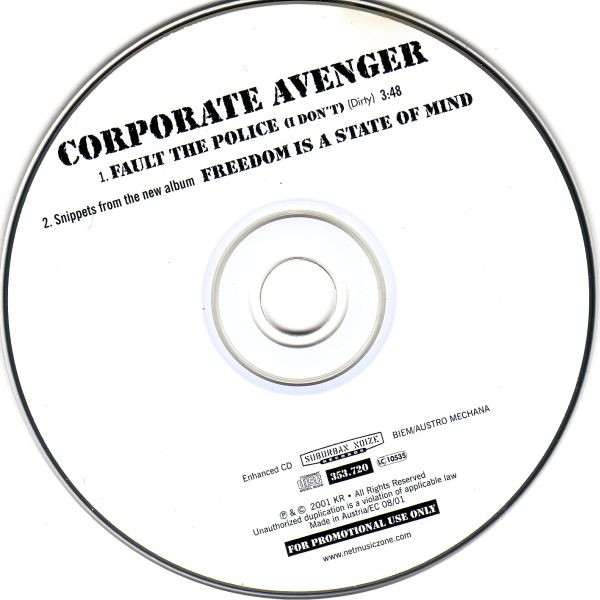 Corporate Avenger – Fault The Police (I Don’t) (CD, Single, Enh, Promo)