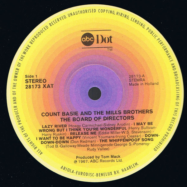 Count Basie And The Mills Brothers – The Board Of Directors (LP, Album, RE)