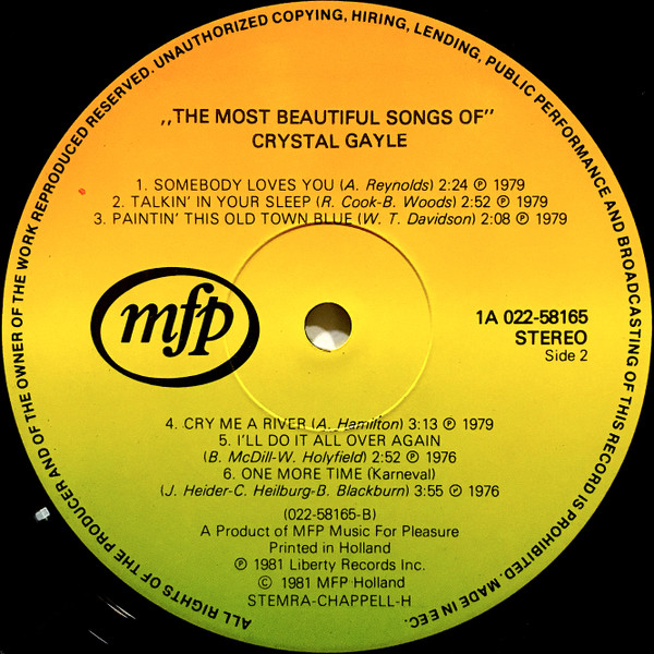 Crystal Gayle – The Most Beautiful Songs Of Crystal Gayle (LP, Comp)