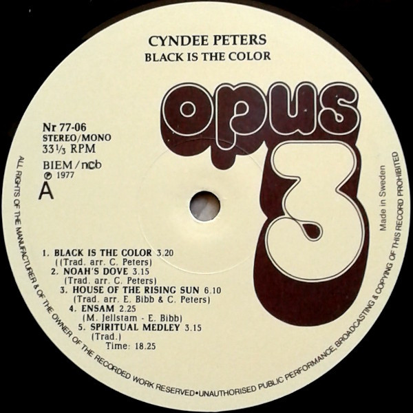 Cyndee Peters – Black Is The Color (LP, Album, Ltd, 160)