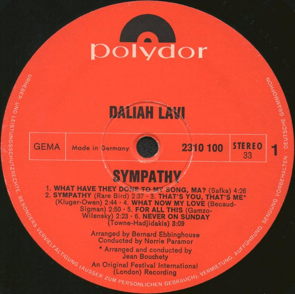 Daliah Lavi – Sympathy (LP, Album)
