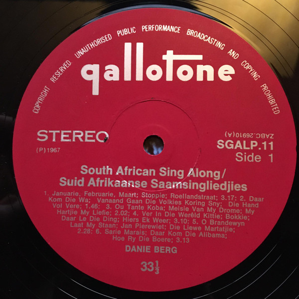 Danie Berg – South African Sing Along / Suid Afrikaanse Saamsingliedjies (LP, Album, Gat)