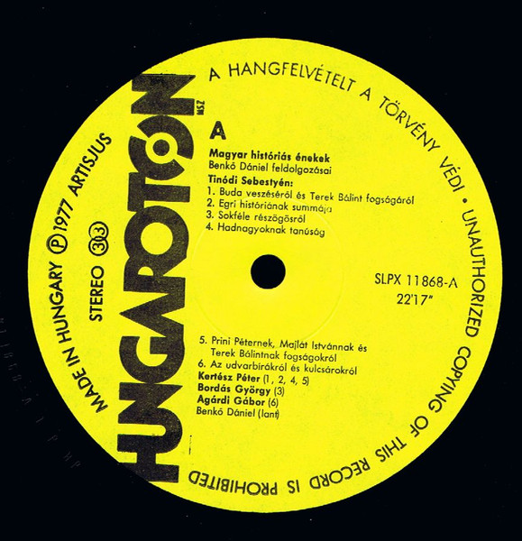 Dániel Benkő – 16th Century Verse-Chronicles from Hungary -Históriás Énekek- (LP)