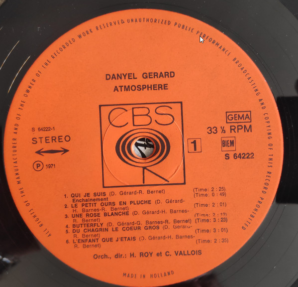 Danyel Gérard – Atmosphère (LP, Album, Gat)