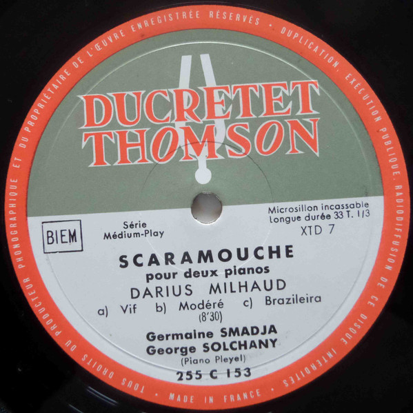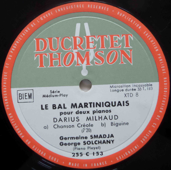 Darius Milhaud / Germaine Smadja, Georges Solchany – Scaramouche / Le Bal Martiniquais (10″)