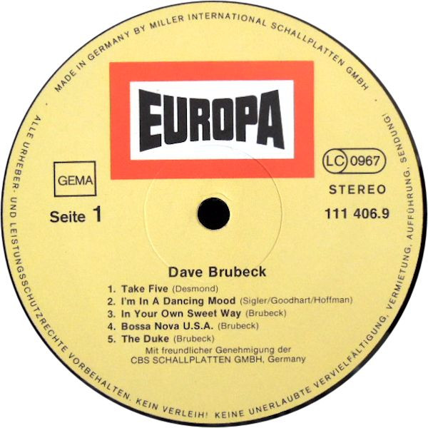 Dave Brubeck – Dave Brubeck (LP, Comp)