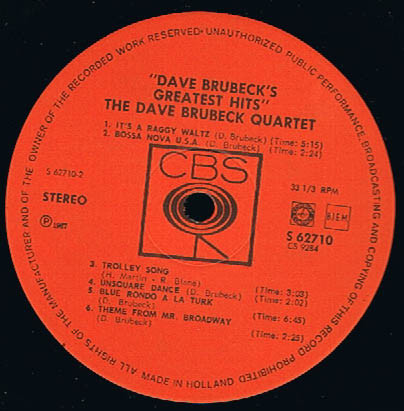 Dave Brubeck – Dave Brubeck’s Greatest Hits (LP, Comp)