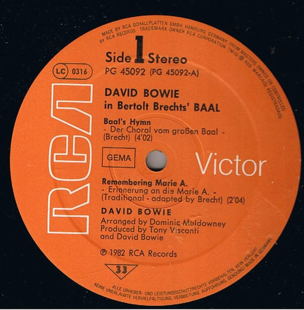 David Bowie – David Bowie In Bertolt Brecht’s Baal (12″, Gat)