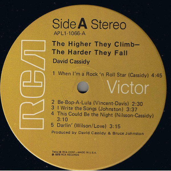 David Cassidy – The Higher They Climb – The Harder They Fall (LP, Album, Ind)