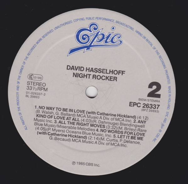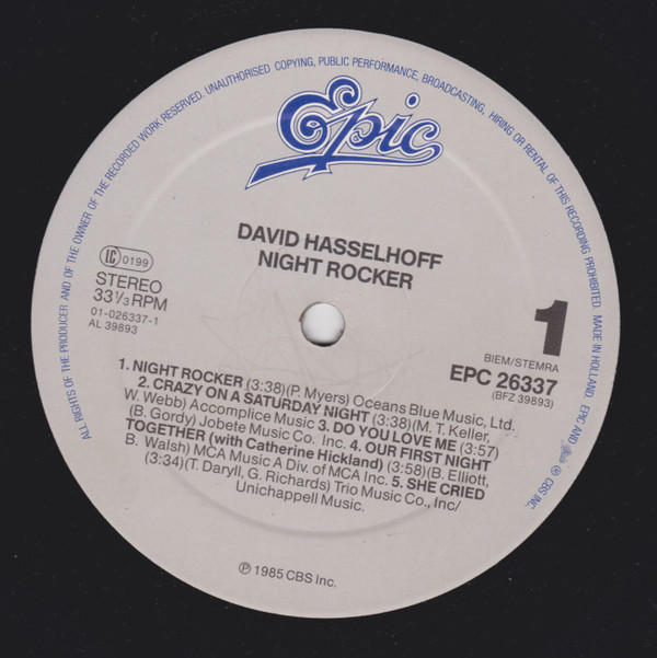 David Hasselhoff – Night Rocker (LP, Album, Gre)