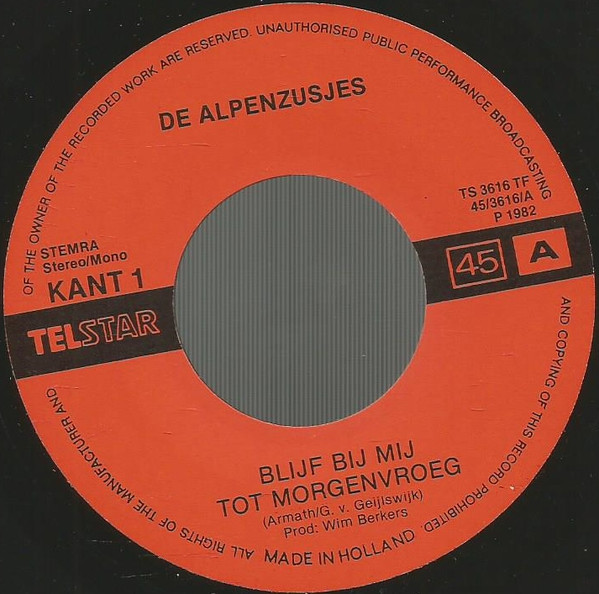 De Alpenzusjes – Blijf Bij Mij Tot Morgenvroeg (7″, Single)