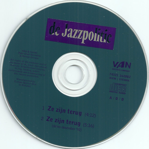 De Jazzpolitie – Ze Zijn Terug (CD, Single)