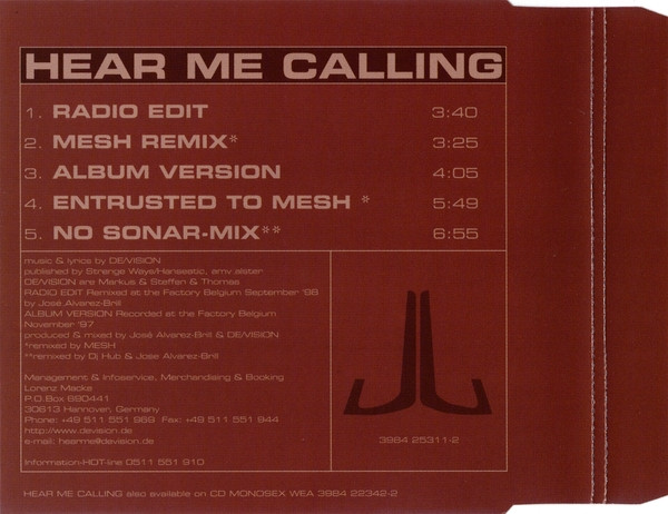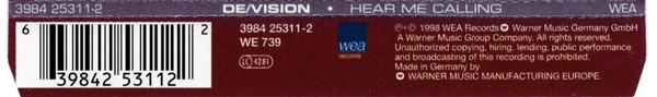 De/Vision – Hear Me Calling (CD, Maxi, Ltd, Promo)