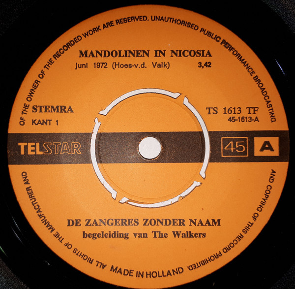 De Zangeres Zonder Naam* – Mandolinen In Nicosia (Het Lied V/d Druivenplukkers) (7″, Single)