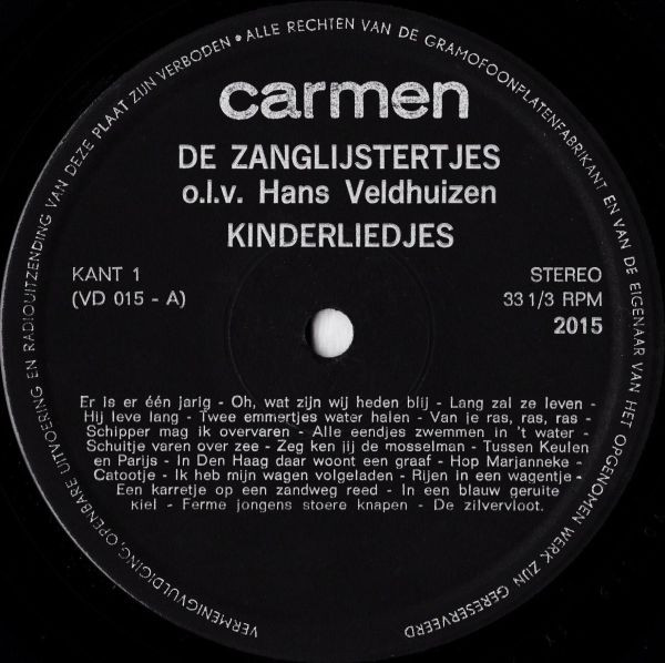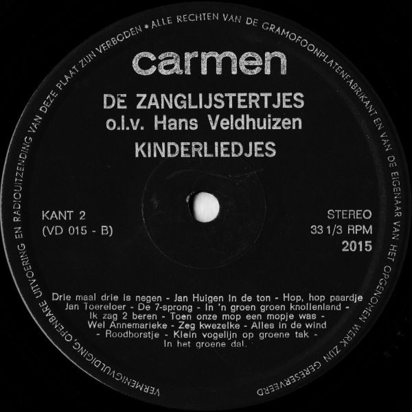 De Zanglijstertjes o.l.v. Hans Veldhuizen – Kinderliedjes (LP, Album)