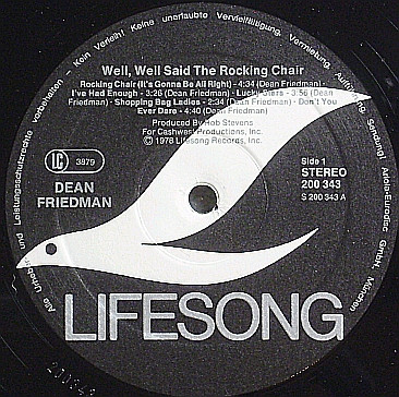 Dean Friedman – “Well, Well,” Said The Rocking Chair. (LP, Album)