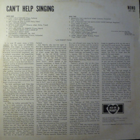 Deanna Durbin – Can’t Help Singing (LP, Comp, Mono)