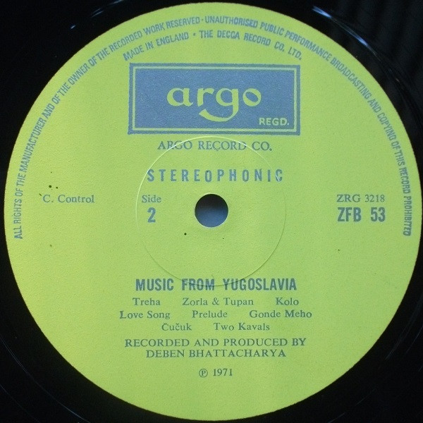 Deben Bhattacharya – Music From Yugoslavia (LP)