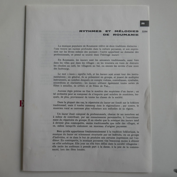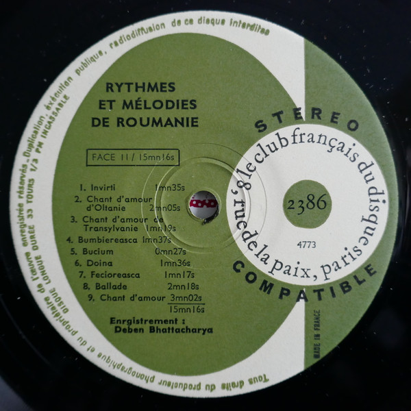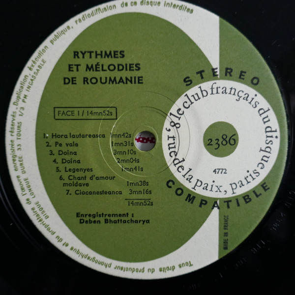 Deben Bhattacharya / Unknown Artist – Rythmes Et Mélodies De Roumanie (10″)