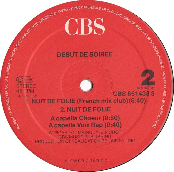 Debut De Soiree* – Nuit De Folie (Remix Par “Mixmaster” Pete Hammond) (12″, Maxi)