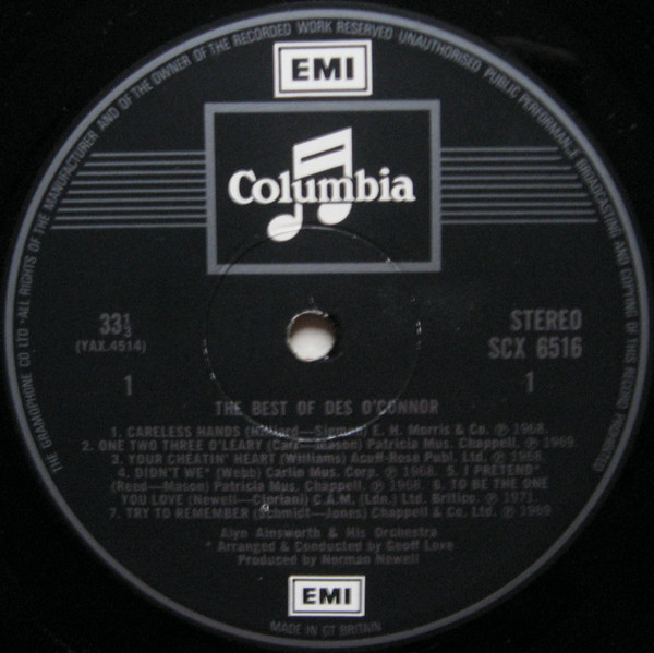 Des O’Connor With The Alyn Ainsworth Orchestra – The Best Of Des O’Connor (LP, Comp)