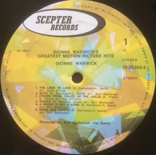 Dionne Warwick – Dionne Warwick’s Greatest Motion Picture Hits (LP, Comp)