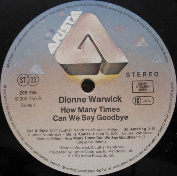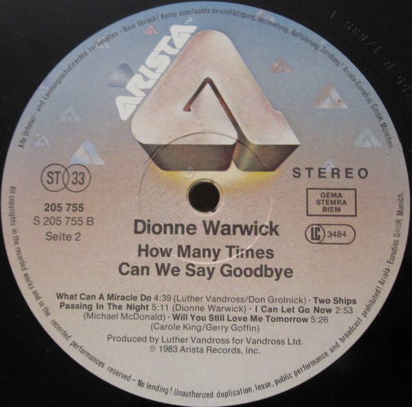 Dionne Warwick – How Many Times Can We Say Goodbye (LP, Album)