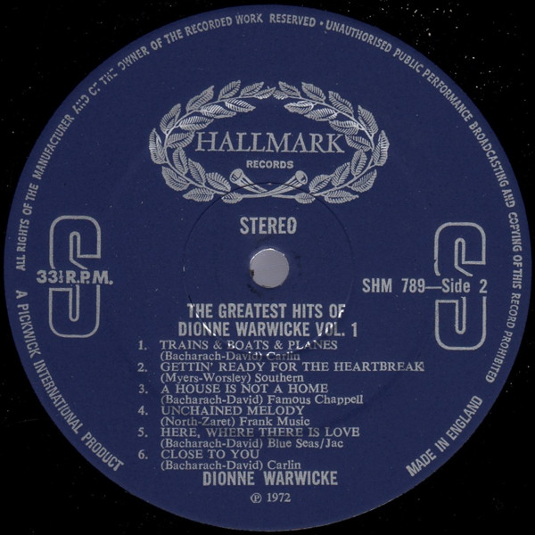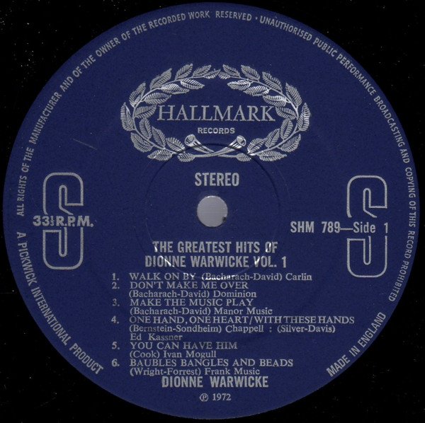 Dionne Warwick – The Greatest Hits Of Dionne Warwicke Vol. 1 (LP, Comp)