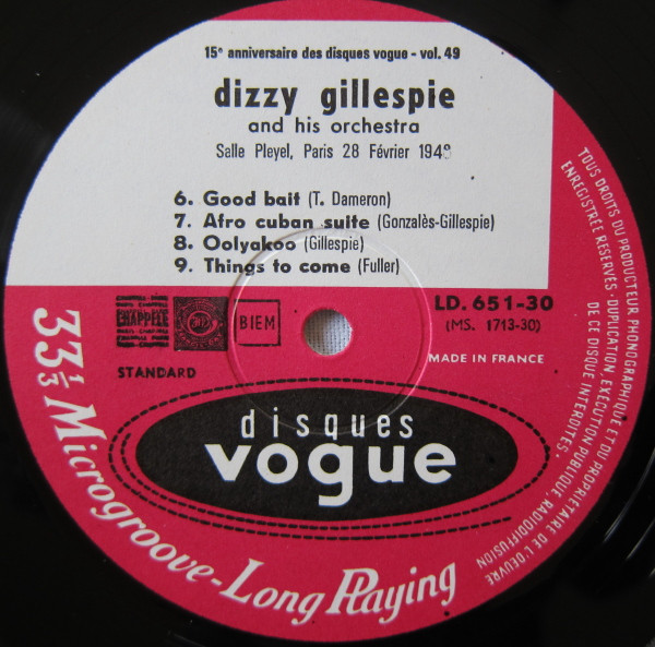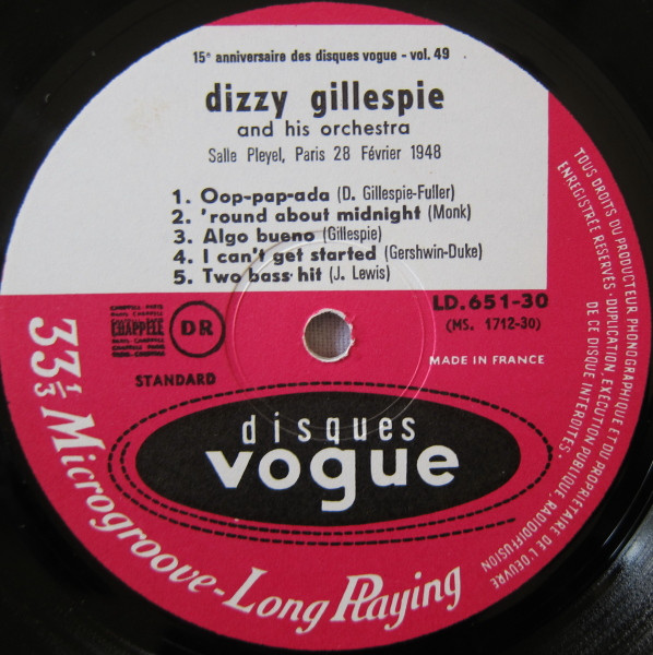Dizzy Gillespie – Paris, Salle Pleyel, 28 Février 1948 (LP, Album, Mono)