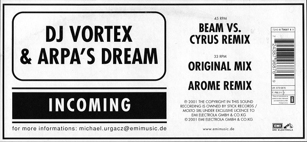 DJ Vortex & Arpa’s Dream – Incoming (12″)