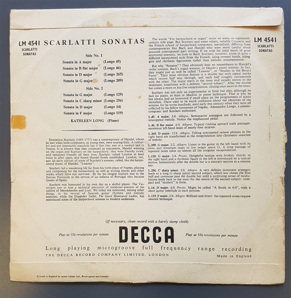 Domenico Scarlatti, Kathleen Long – Sonatas (10″, Mono)