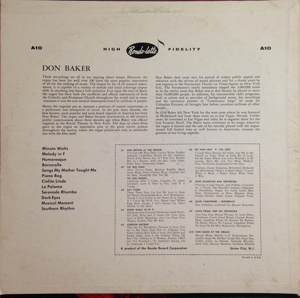 Don Baker (2) With Lee Pepper (2) – At The Paramount Theatre Organ (LP, Album)