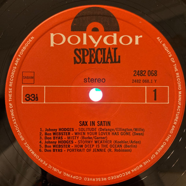 Don Byas, Ben Webster, Johnny Hodges – Sax In Satin (LP, Comp)